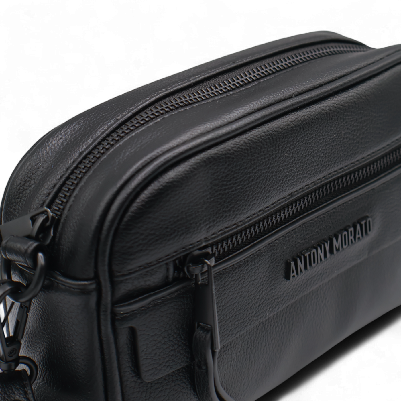 Bolso Antony Morato negro con cinta y cremallera. Diseño moderno y funcional, ideal para el día a día y para complementar tu estilo urbano.