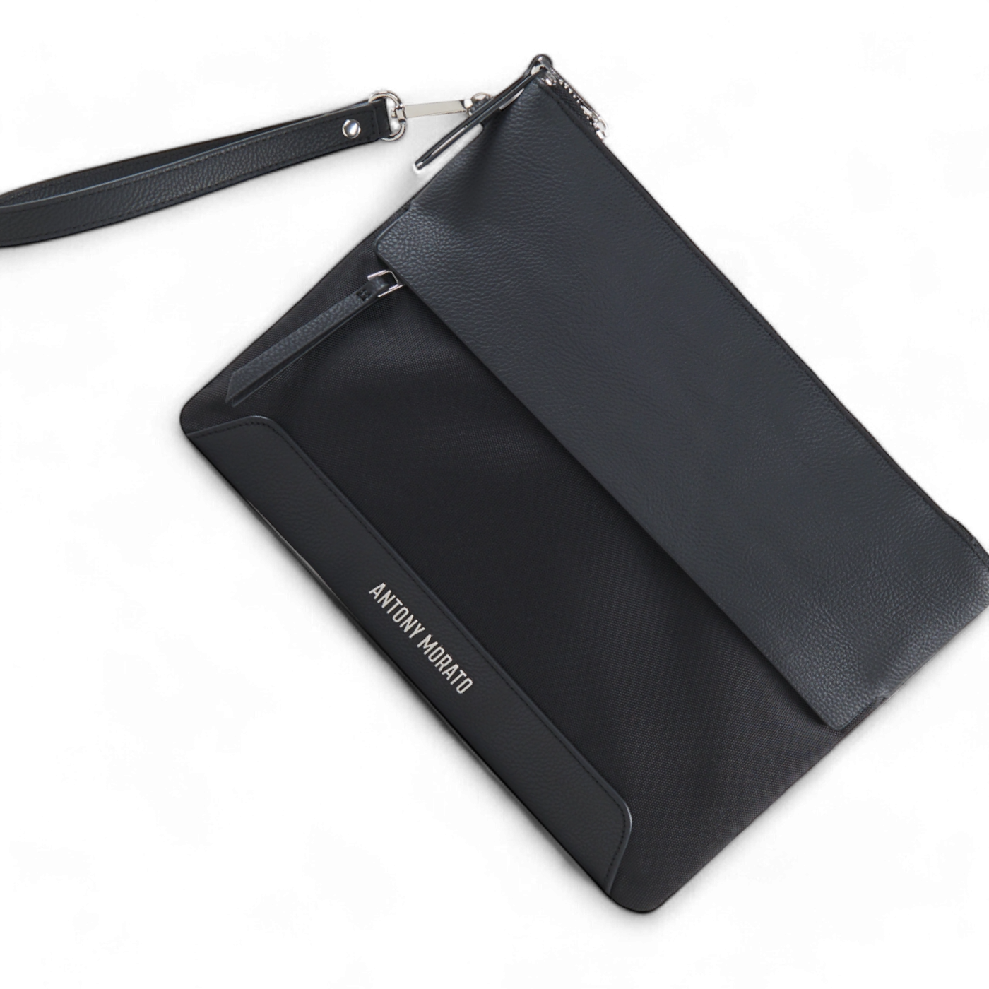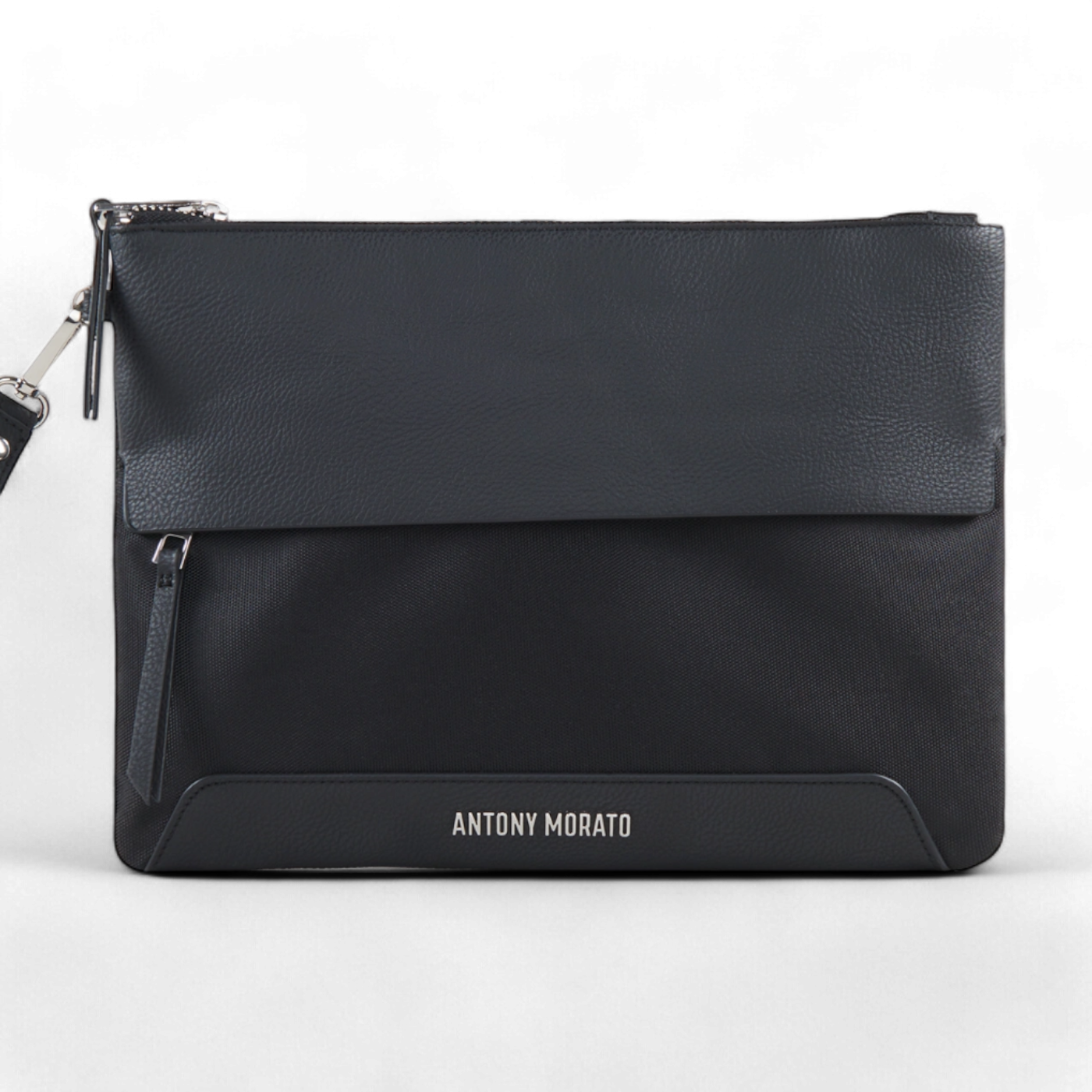 Bolso Antony Morato negro confeccionado en piel sintética y nylon. Elegante, moderno y resistente, ideal para un estilo urbano con personalidad.