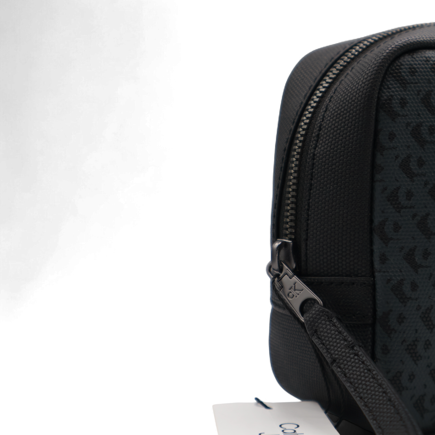 Presenta un estampado integral con el icónico logo de Calvin Klein (AOP - All Over Print) en tono oscuro, ideal para outfits urbanos o deportivos. Incluye compartimento principal con cremallera y correa ajustable que permite llevarla tanto a la cintura como cruzada al pecho.