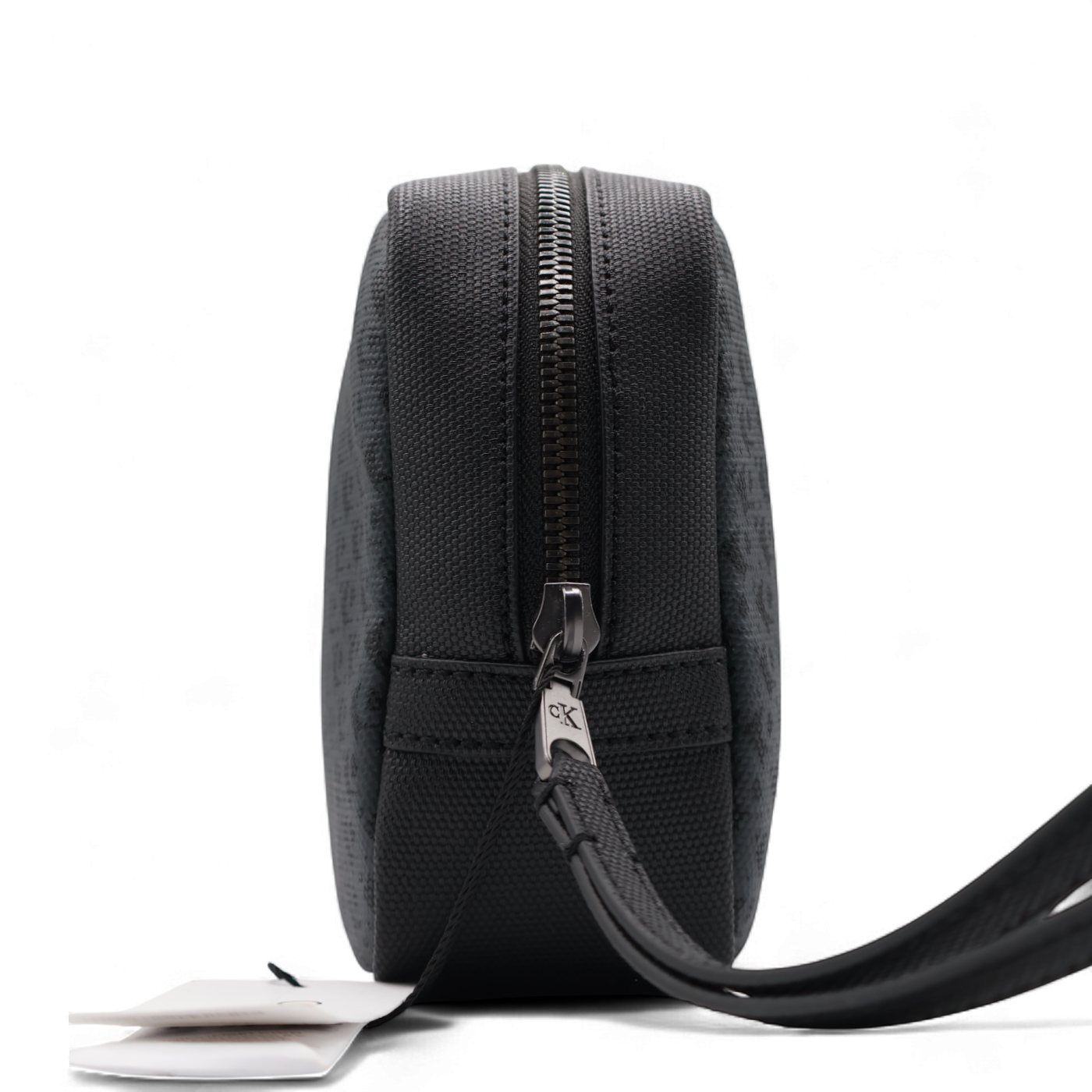 Riñonera Calvin Klein en color negro con estampado integral del logo CK. Diseño moderno y práctico, ideal para el día a día o viajes.