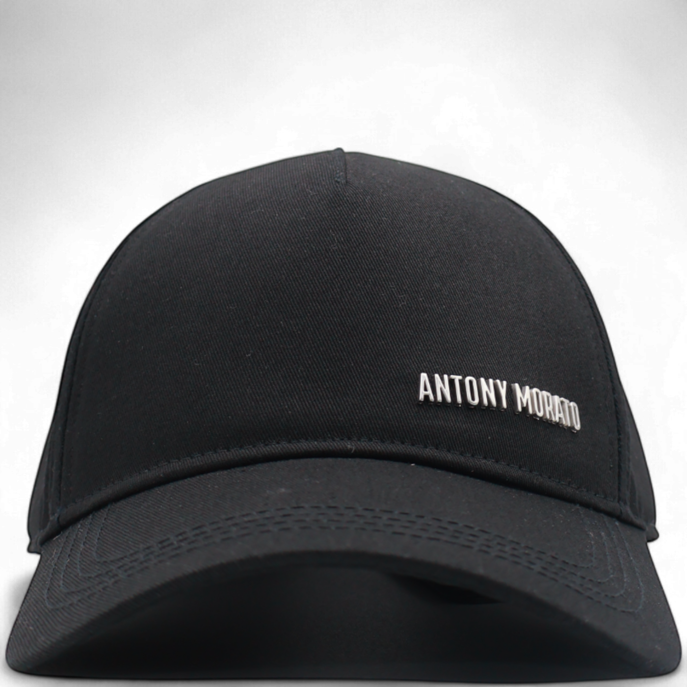 Gorra Antony Morato para hombre en negro, con logo AM en relieve. Estilo urbano y casual, cómoda y con diseño italiano moderno y distintivo.