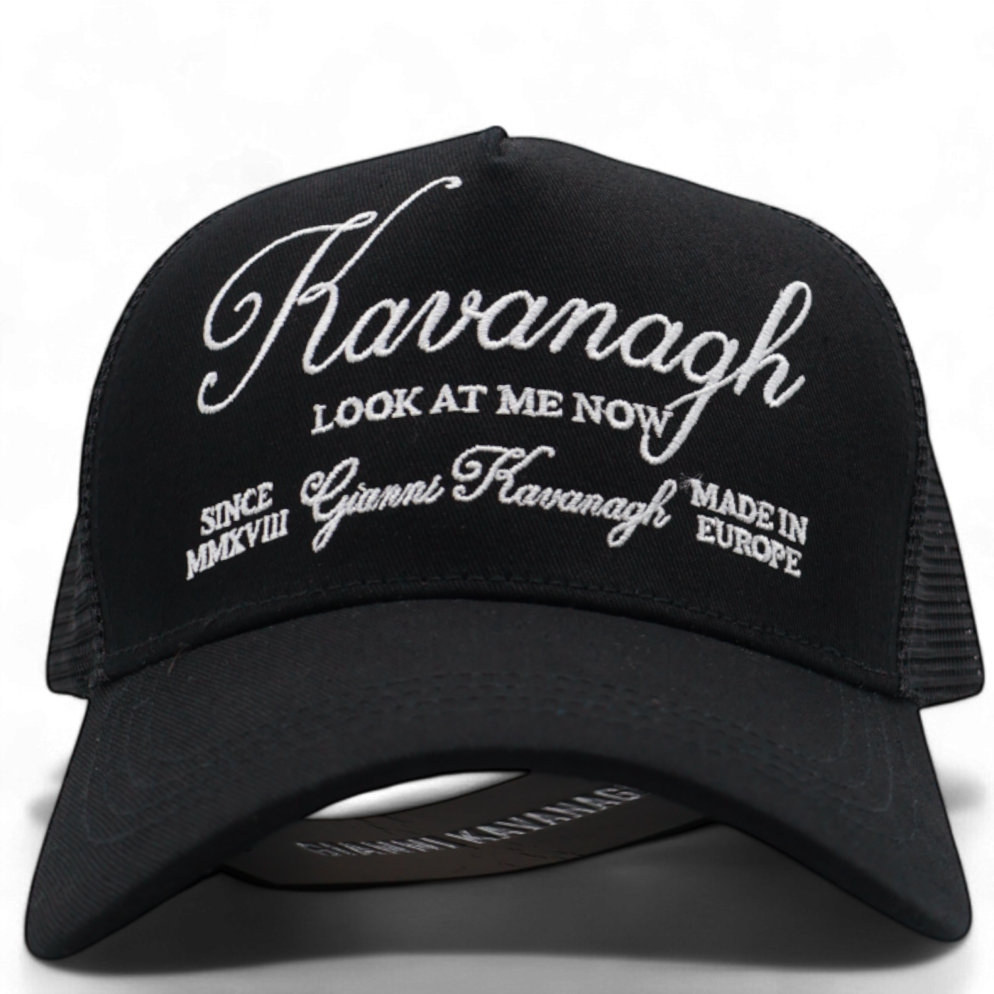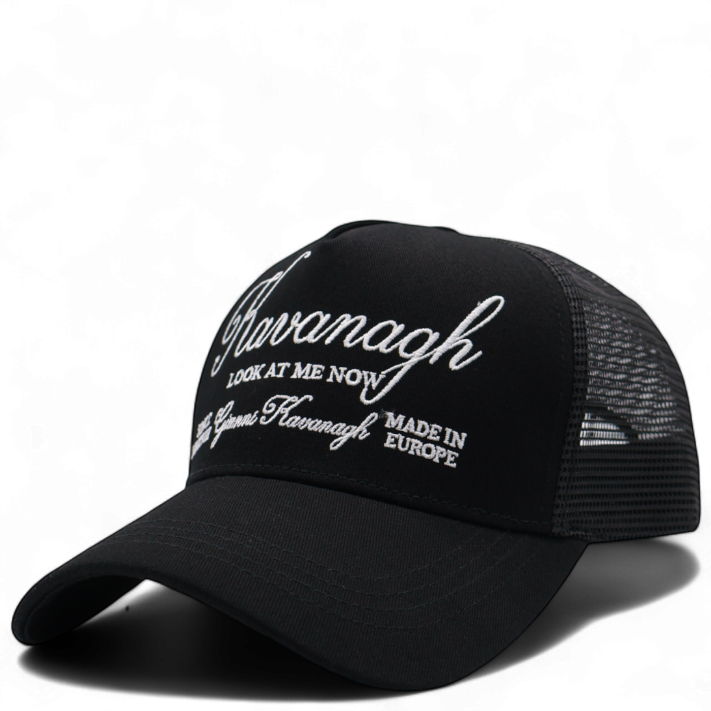 La Gorra Gianni Kavanagh Showstopper Cap Negro es una declaración de actitud. Con un diseño tipo trucker, esta gorra combina un frontal sólido en tejido negro con bordados en blanco que destacan la identidad de la marca con frases como "Look at me now" y "Made in Europe".