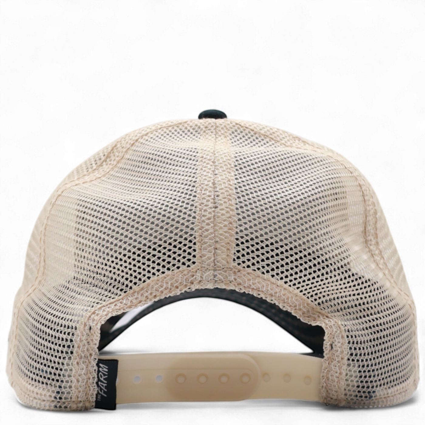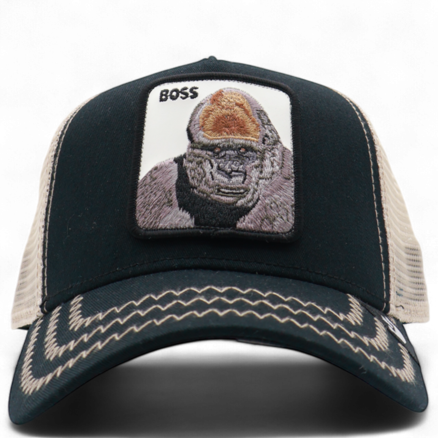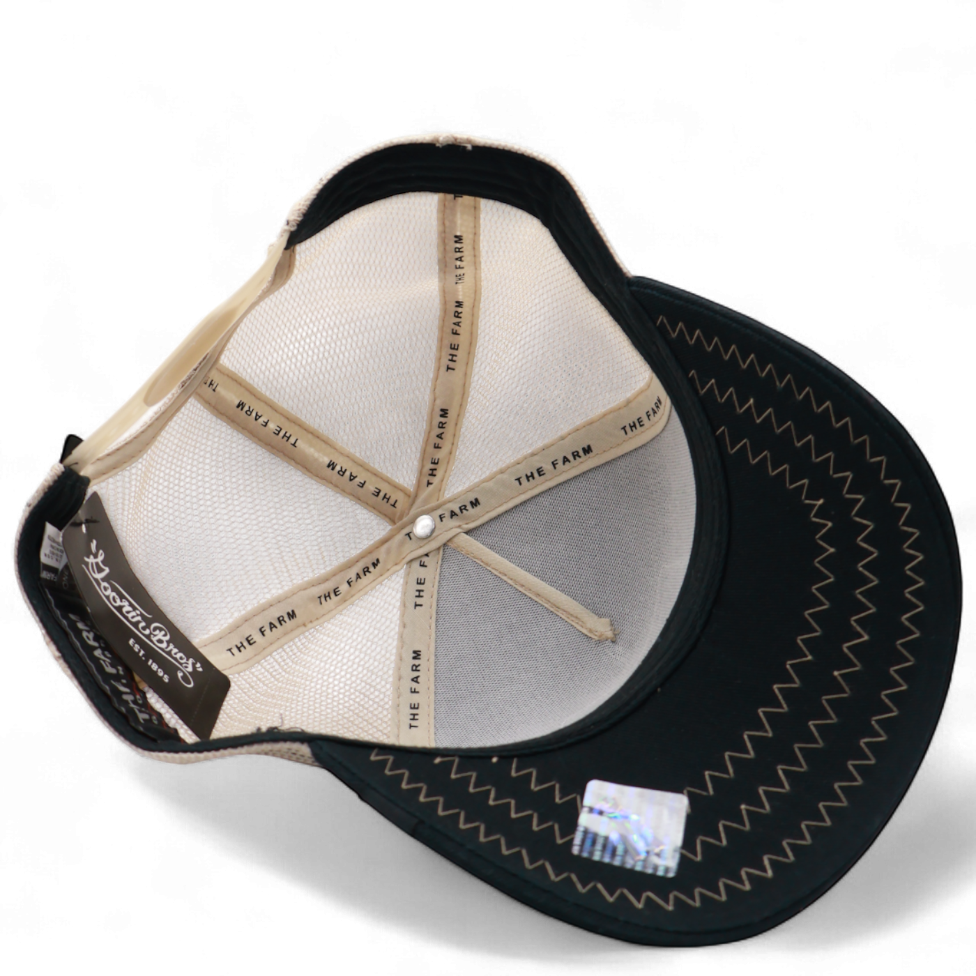 Gorra Goorin Bros Panther Jewel Tones Iced con diseño trucker, parche bordado de pantera y ajuste trasero regulable.