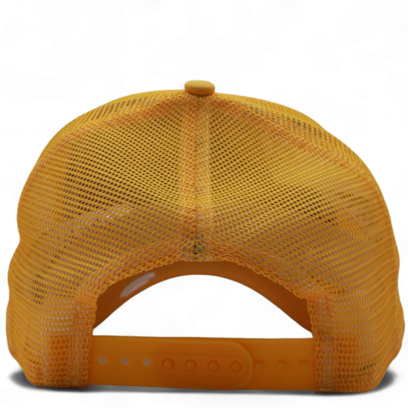 Gorra Goorin Bros Gallo con la placa en color oro estilo trucker, con parche bordado y cierre trasero ajustable.
