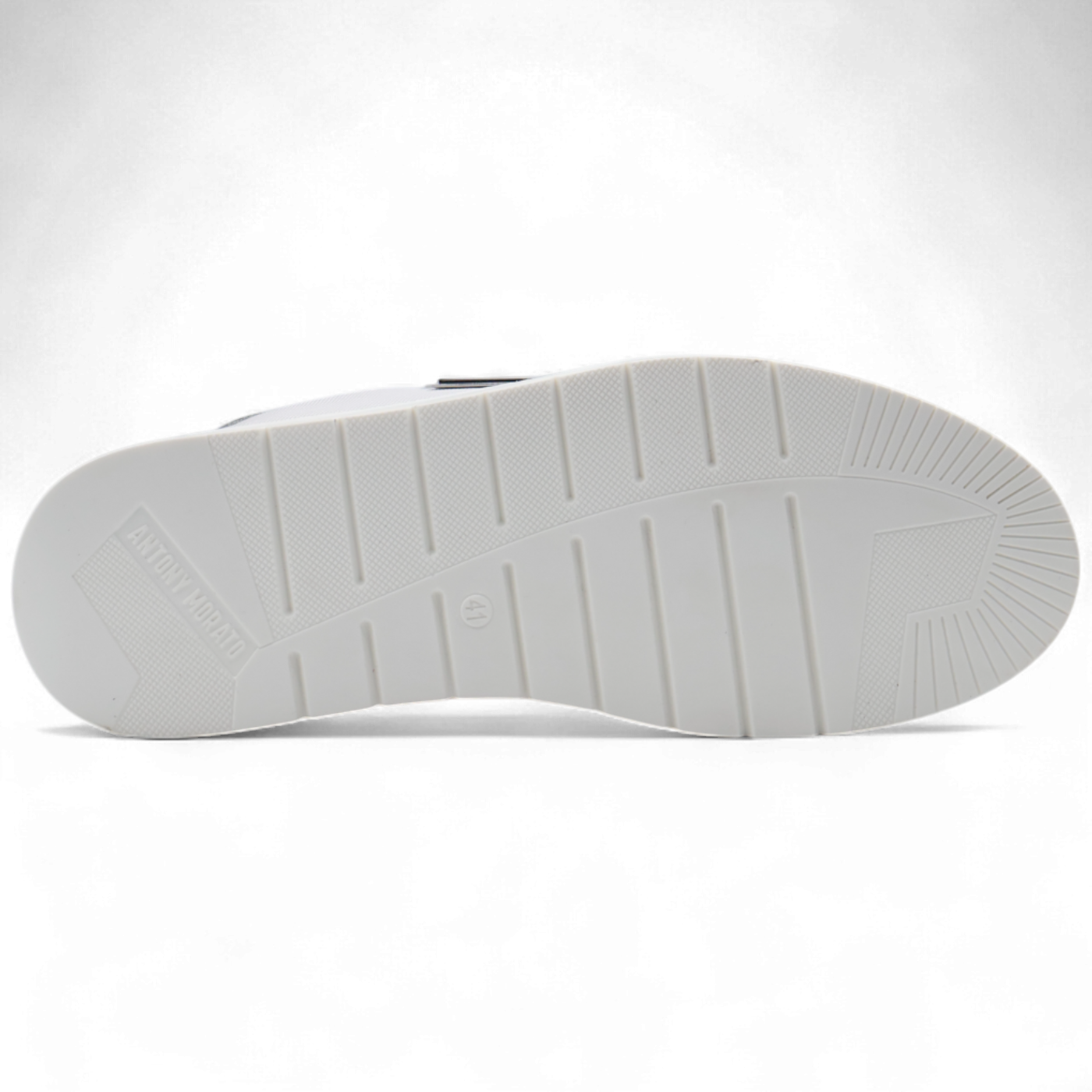 Zapatillas Antony Morato Fabian para hombre en blanco, confeccionadas en ecopiel. Estilo urbano, cómodas y con diseño italiano moderno y sostenible.