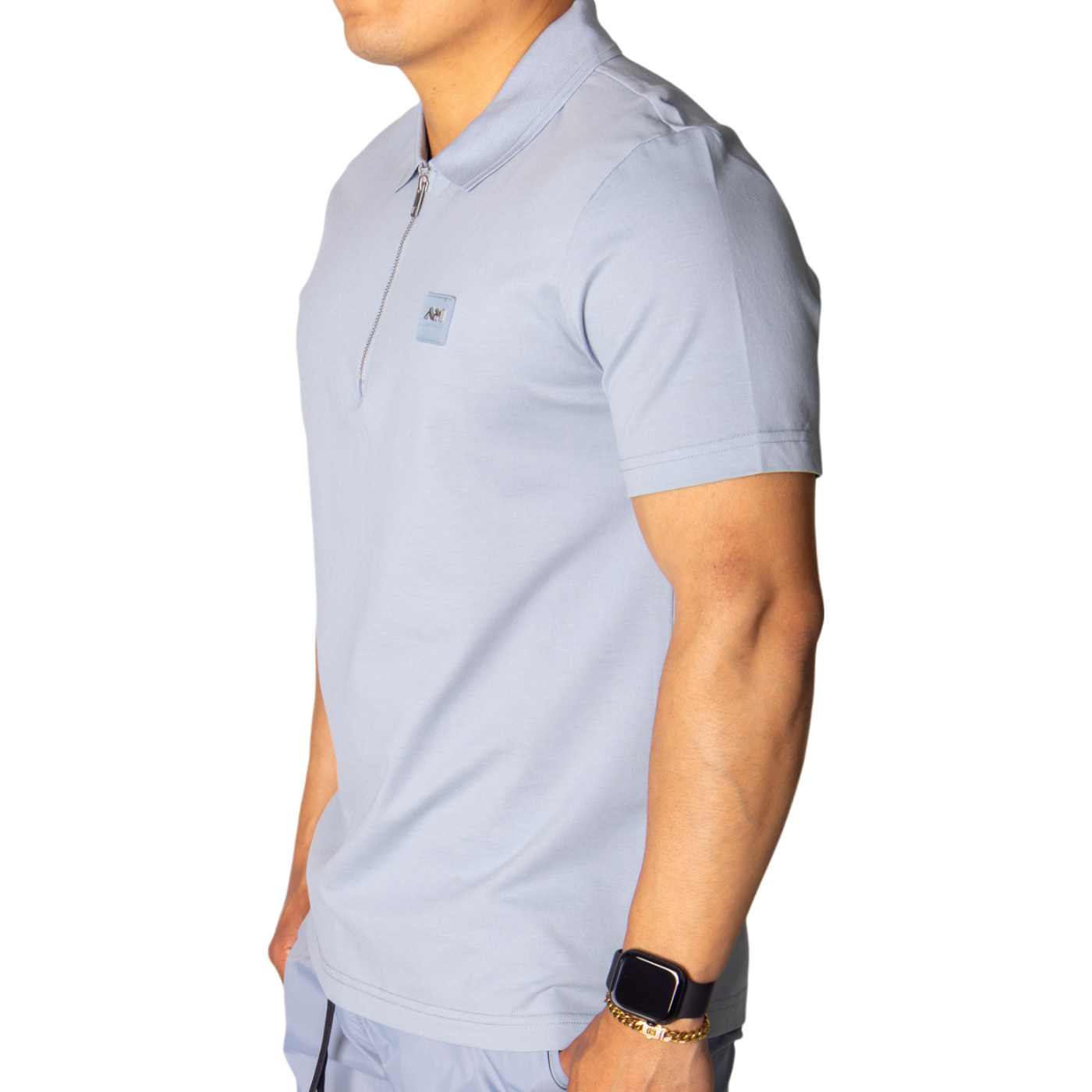 Polo Antony Morato azul sky fit con metal badge azul. Elegante, cómodo y perfecto para un look casual moderno y sofisticado.