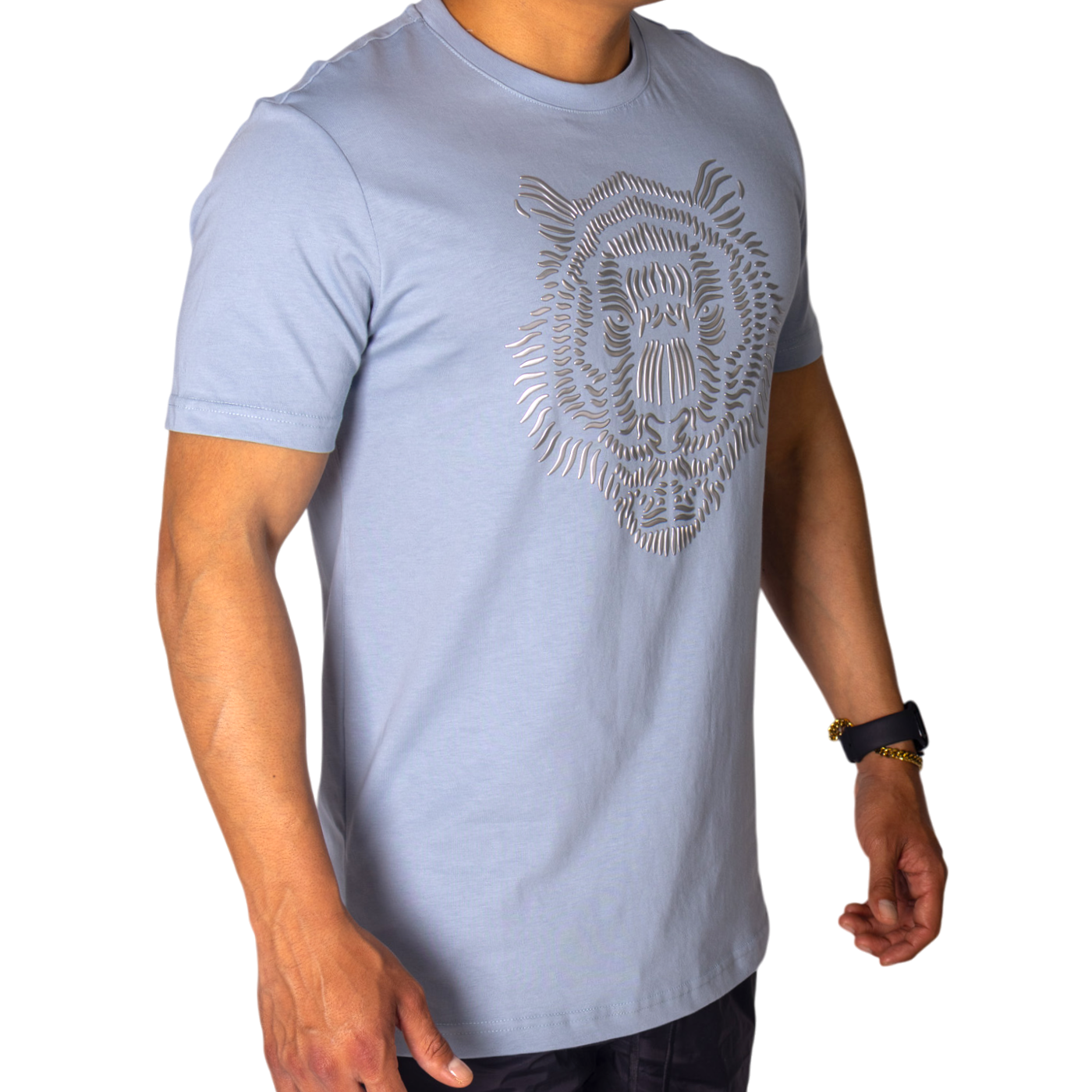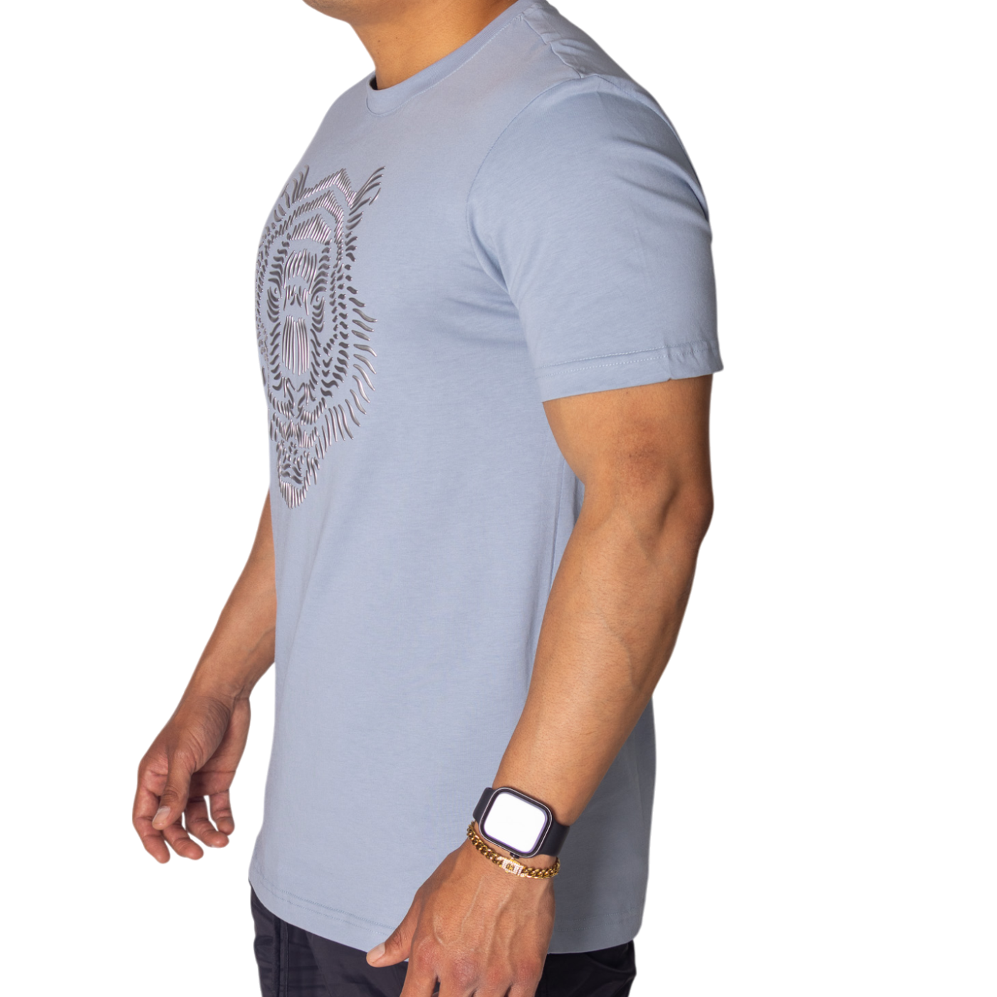 La Camiseta Antony Morato de Algodón Azul Sky con Estampado León Plata combina estilo, confort y un toque de distinción.