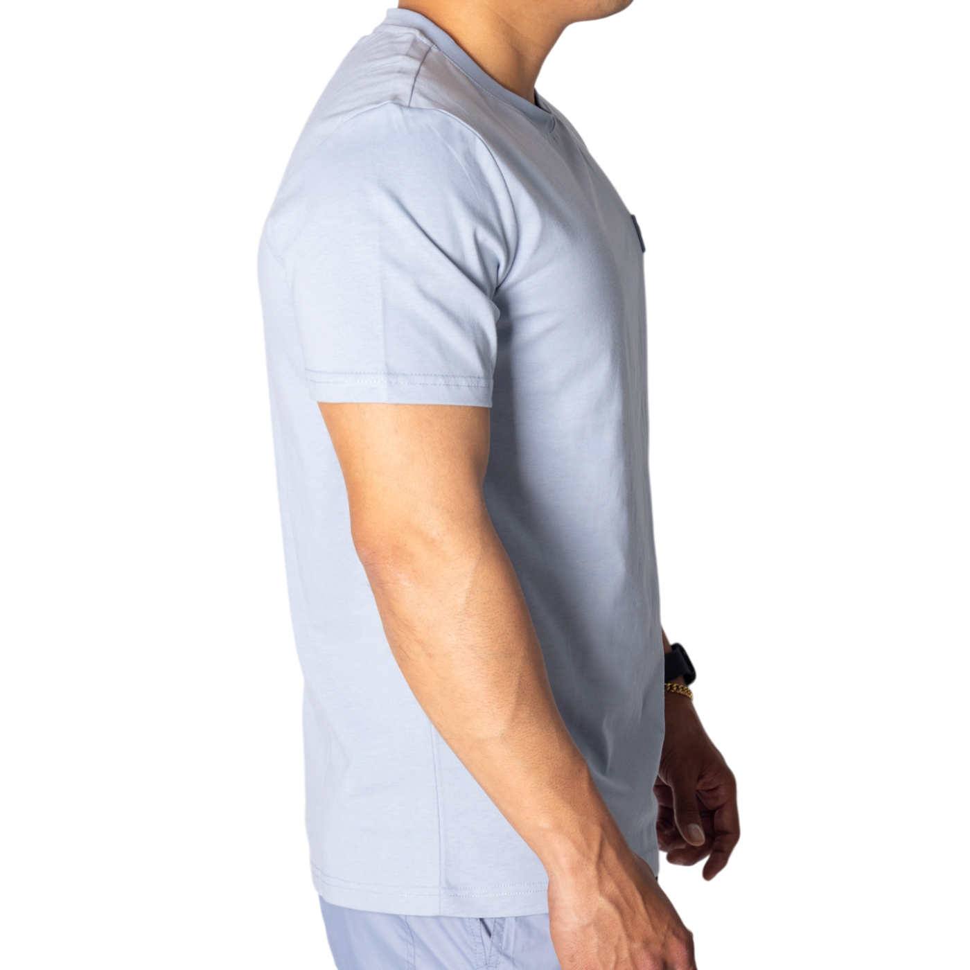 La Camiseta Antony Morato Azul Sky Algodón con Logo Metálico Azul combina estilo, confort y un detalle distintivo que resalta.