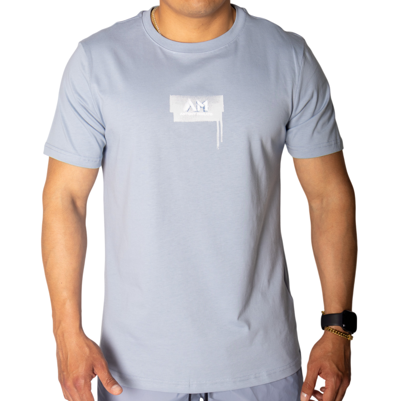 La Camiseta Antony Morato Azul Sky con Estampado Logo Blanco combina estilo, confort y un detalle distintivo que resalta.