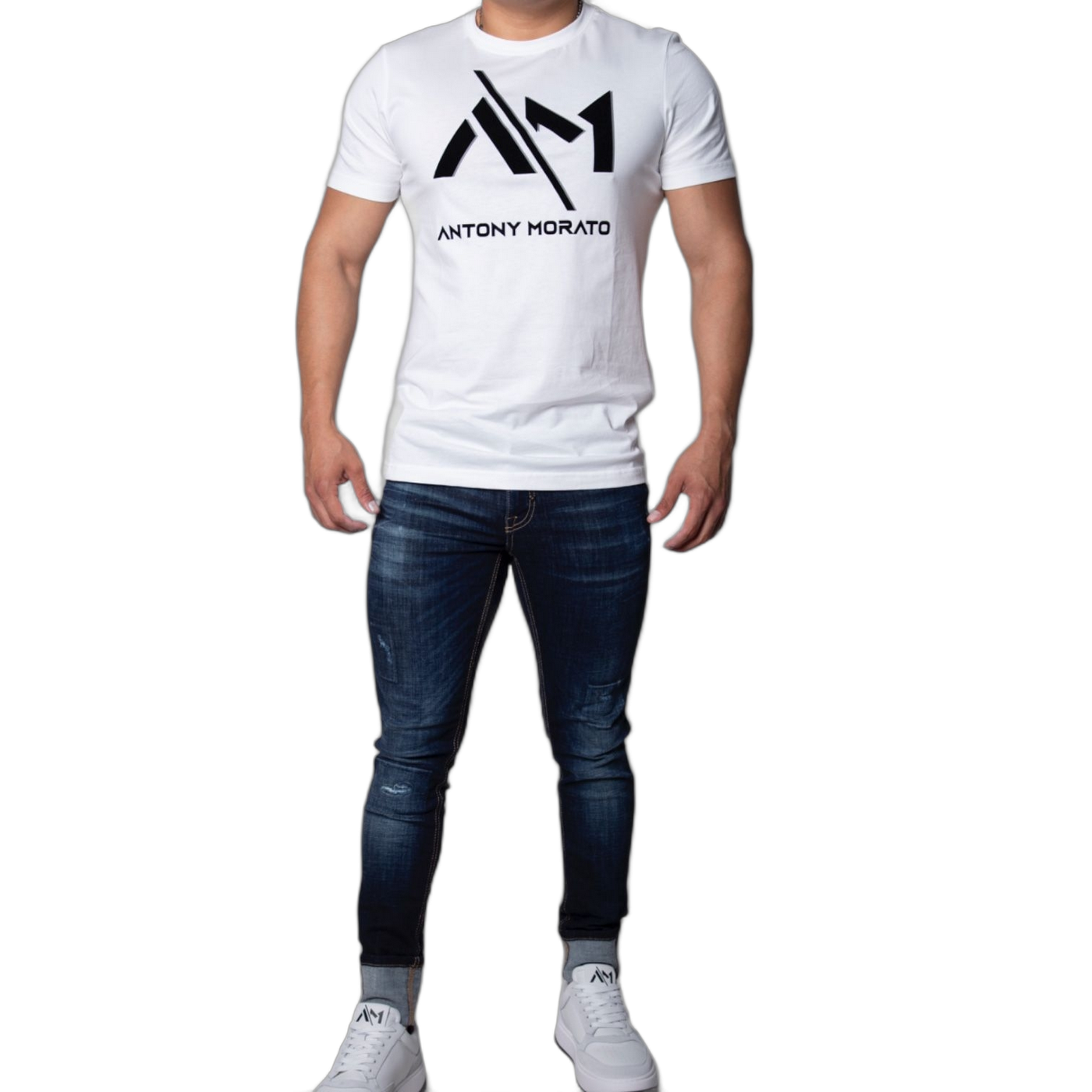 Camiseta Antony Morato de hombre en punto de algodón suave, corte regular fit y cuello redondo. Destaca por el logotipo estampado en el pecho con diseño gráfico moderno.blanco