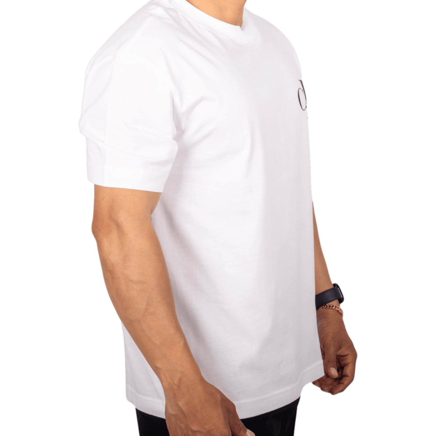Su diseño holgado con monograma frontal aporta un toque moderno y distintivo, mientras que el color blanco permite combinaciones versátiles con jeans, pantalones jogger o bermudas, creando un look sofisticado y urbano.