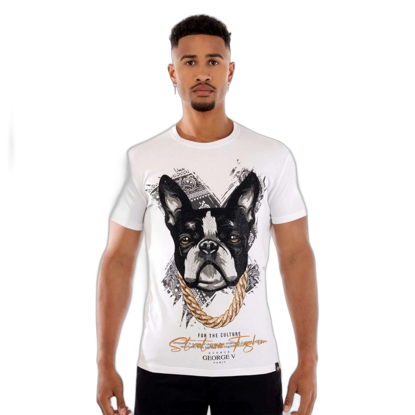 Camiseta George V Paris Bulldog GV Blanco, una prenda exclusiva con diseño urbano, estilo moderno y detalles icónicos que reflejan lujo parisino.