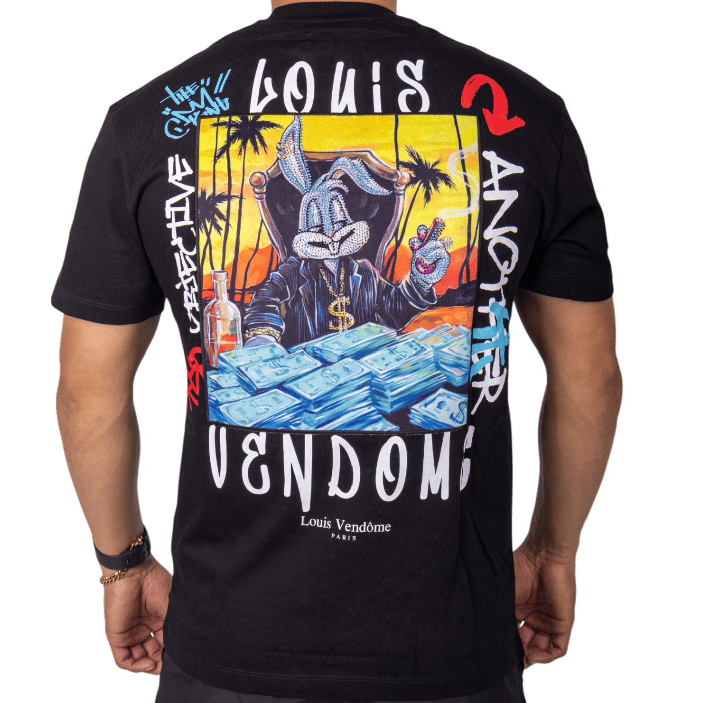 Su color negro y el estampado Bunny le aportan un toque único y llamativo, ideal para destacar en looks casuales o streetwear. Perfecta para quienes buscan una camiseta urbana que combine estilo, personalidad y edición limitada Louis Vendome.