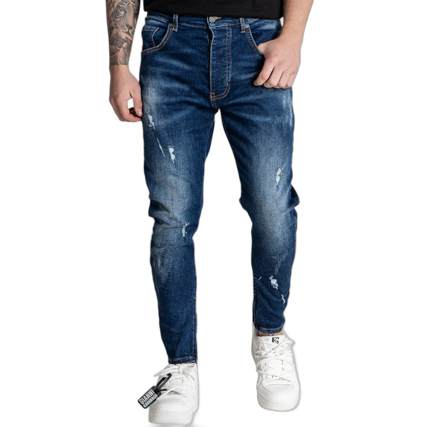 Los Jeans Gianni Kavanagh Destruidos con Cremallera Marino son la prenda ideal para quienes buscan un look casual con personalidad. Fabricados con materiales de alta calidad, ofrecen comodidad y durabilidad. Su diseño destruido combinado con detalles de cremallera aporta un toque moderno y rebelde, perfecto para destacar en cualquier ocasión urbana.