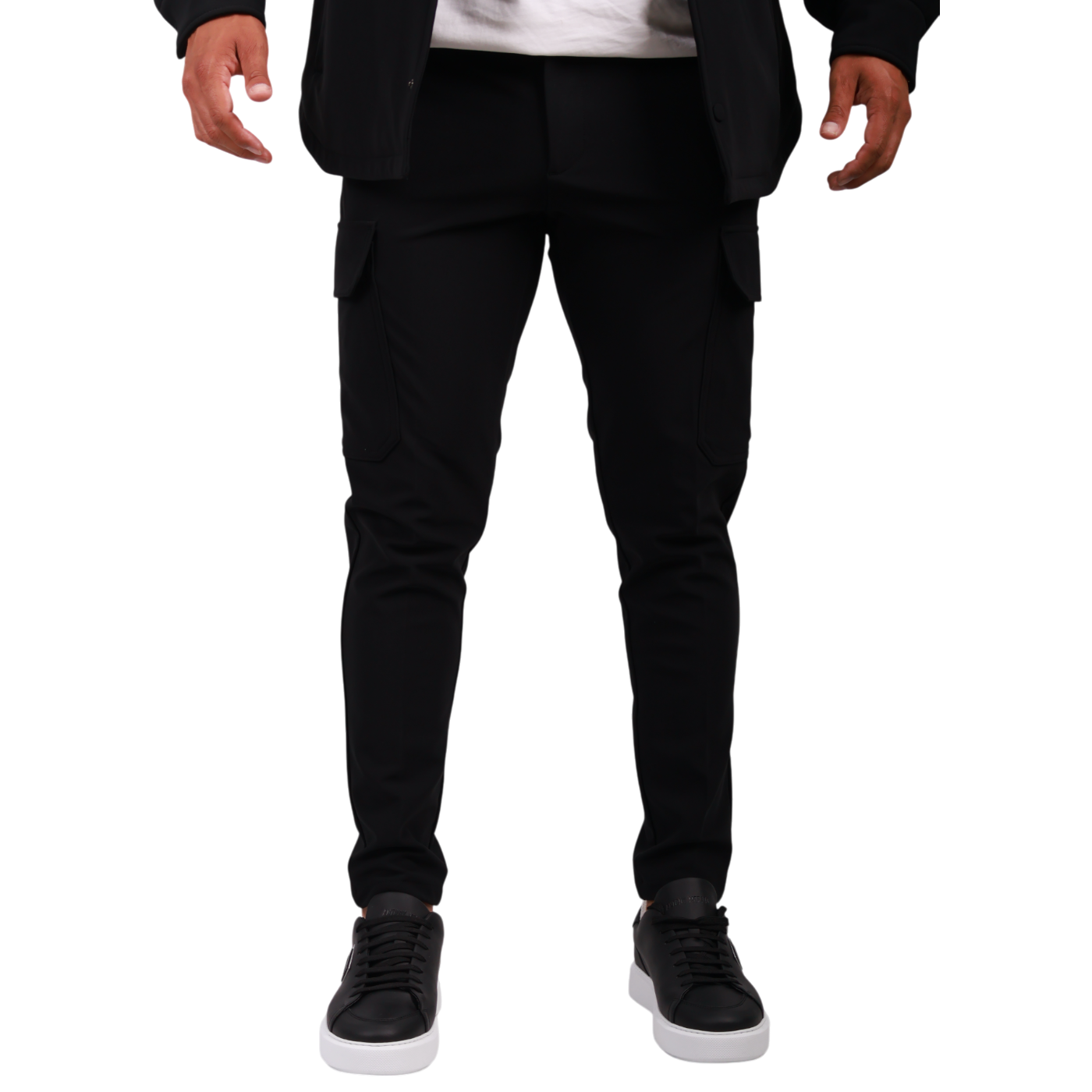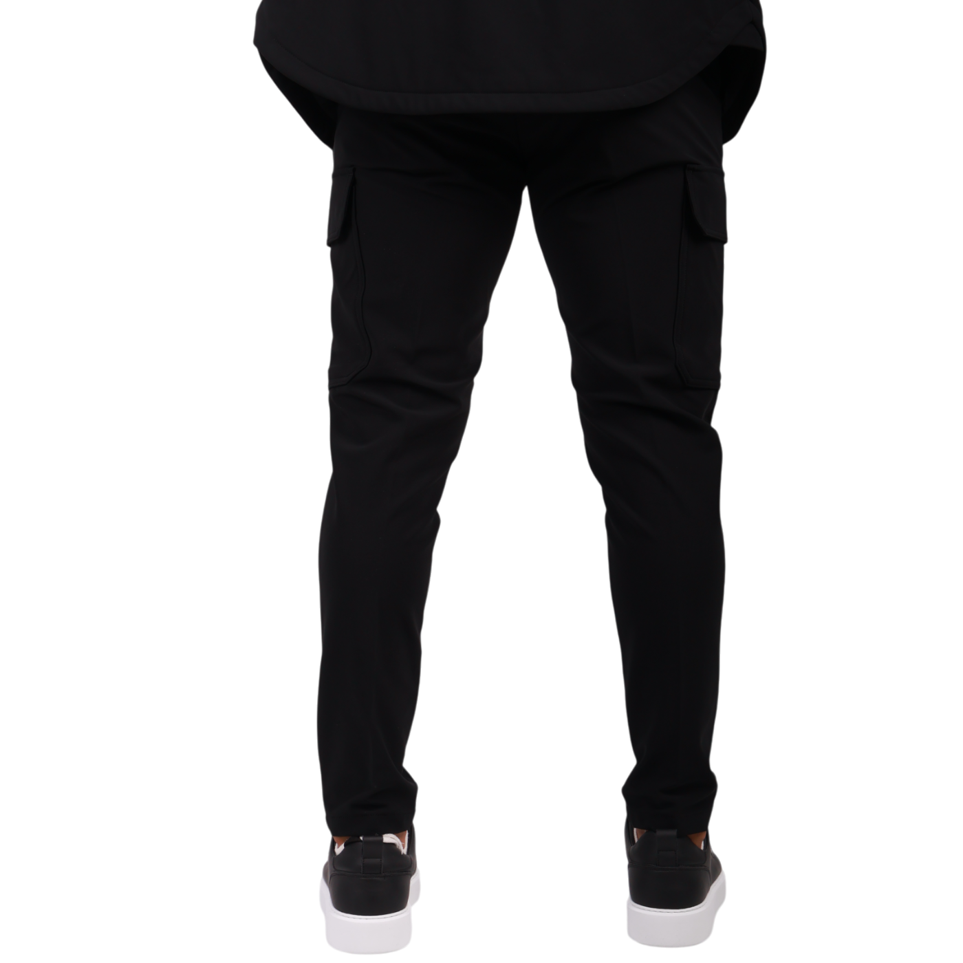 El diseño incluye un cierre con cremallera y botón, cintura elástica en la parte trasera para un mejor ajuste, dos bolsillos laterales tipo welt y dos bolsillos con solapa aplicados en la pernera, aportando funcionalidad y un aire contemporáneo. En la parte inferior, presentan un pequeño detalle de solapa que añade personalidad al diseño.