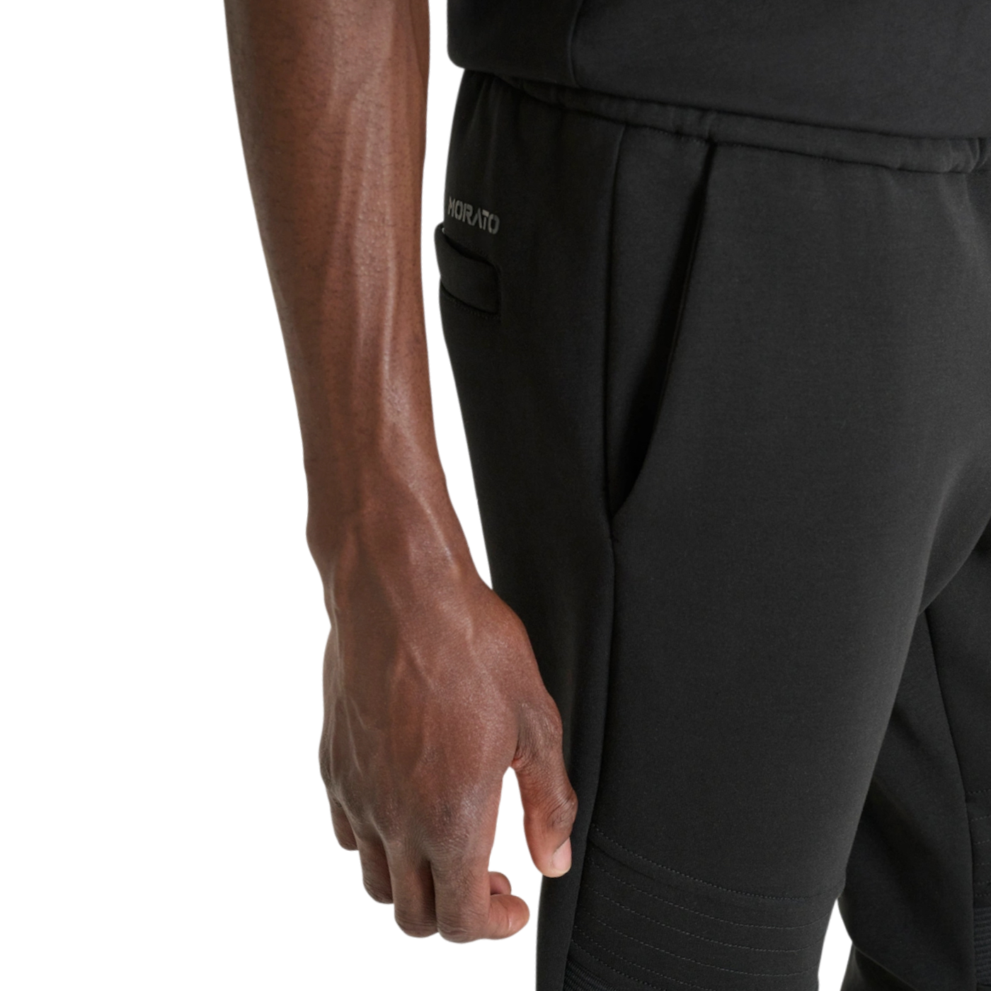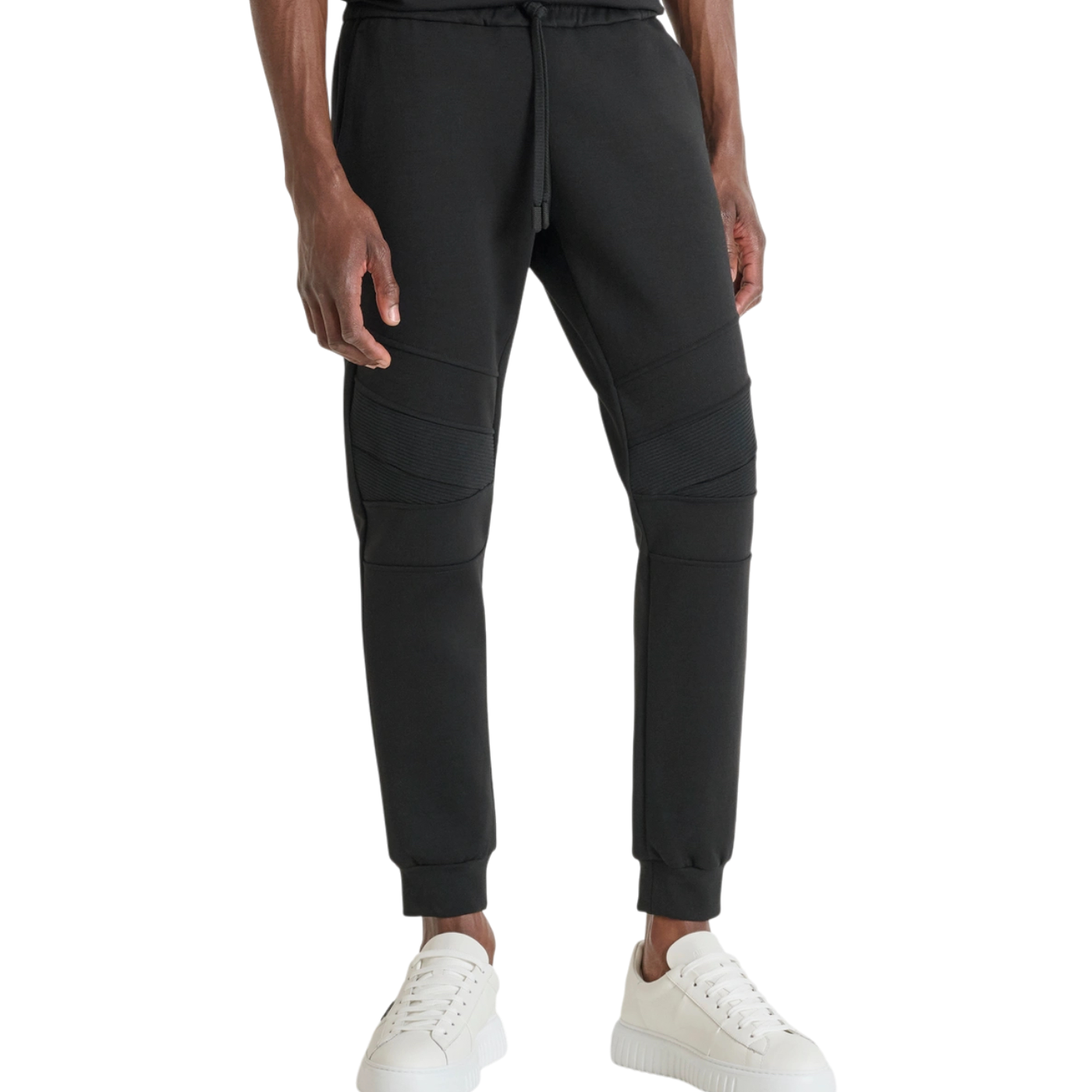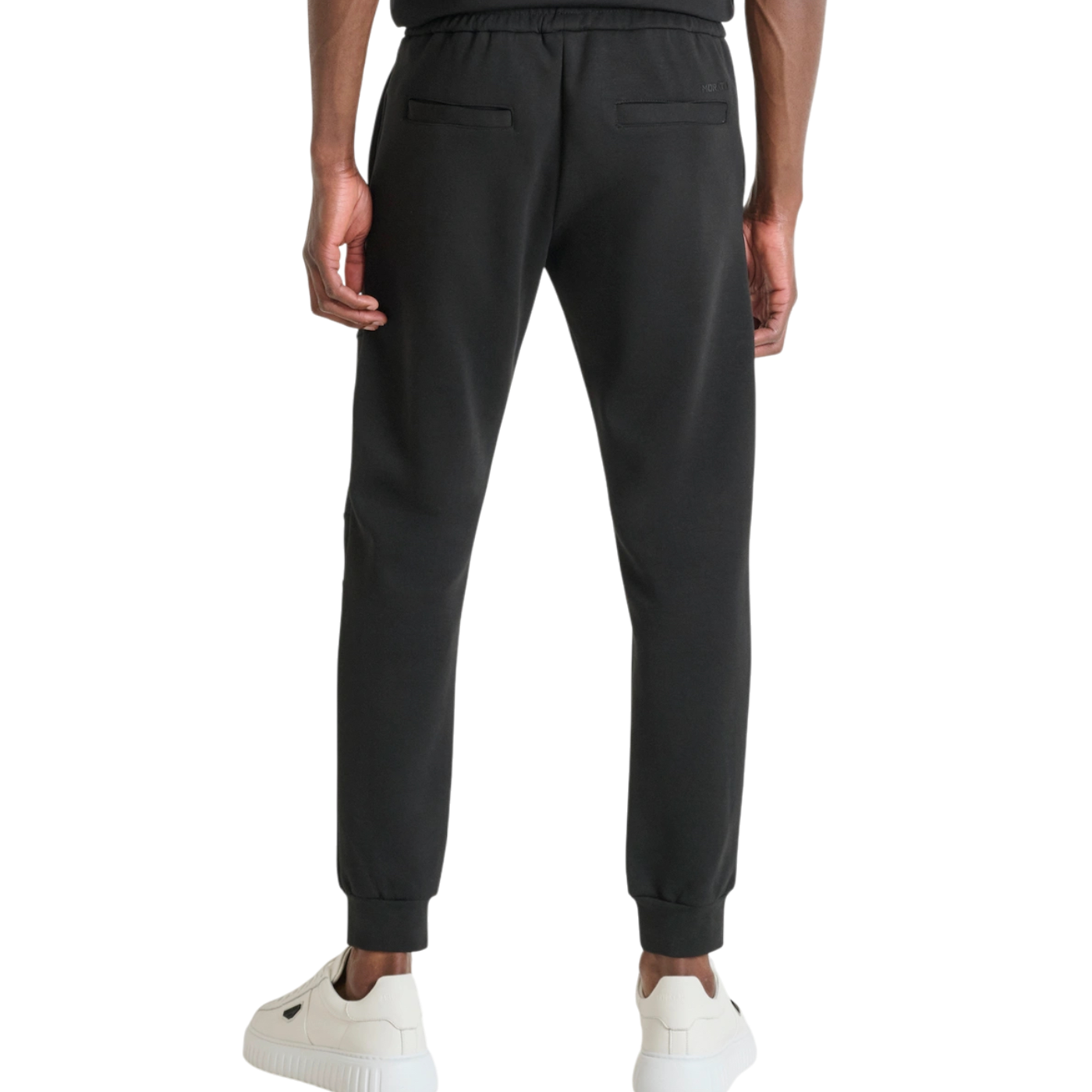 Pantalón Antony Morato negro con bolsillo bimaterial. Cómodo, moderno y perfecto para un look urbano y casual masculino.