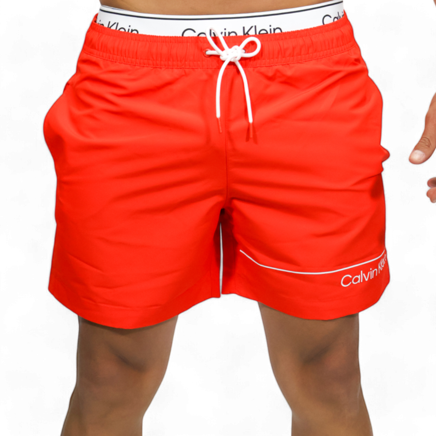 Bañador Calvin Klein Drawstring Block rojo con diseño moderno y cordón ajustable. Comodidad, estilo y el toque icónico de la marca CK para tus días de playa o piscina.