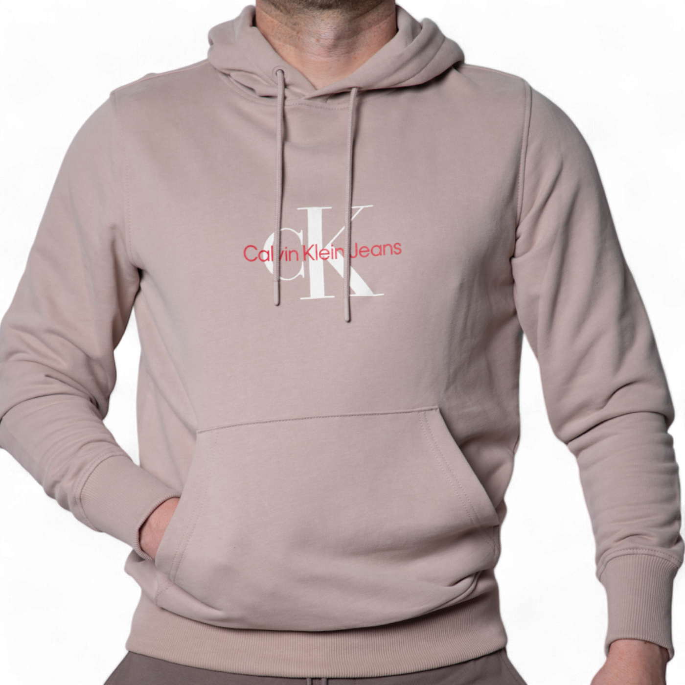 Sudadera Con Capucha Calvin Klein Basica Monologo Beige